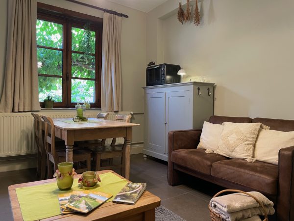 Wil je liever zelf het ontbijt en andere maaltijden klaarmaken? Dat kan. Je kiest dan voor het vakantiehuisje met knusse zithoek en een keuken en alle kookgerei. Winkels liggen op fietsafstand (3 à 4 km).